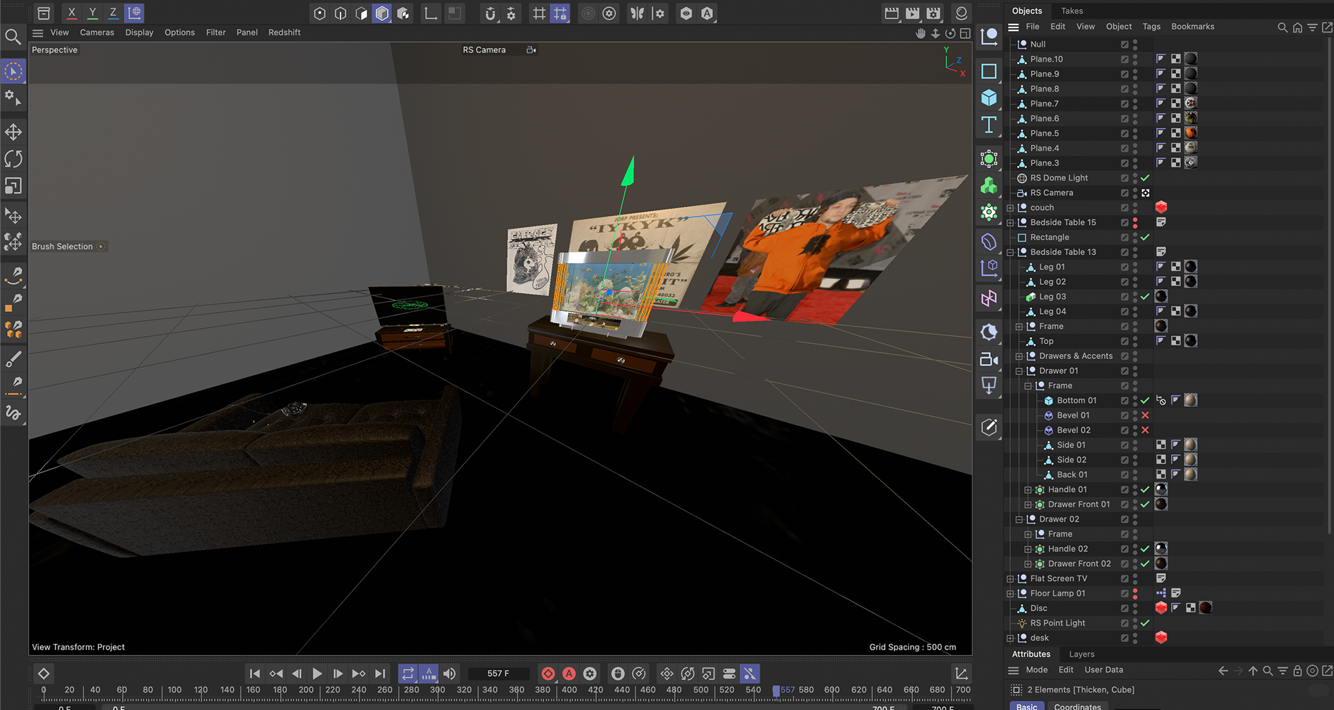 For this project I had a friend of mine request an animated intro for his skateboard clothing company promotional video. Within Cinema4D I modeled and animated the baquler fishtank, posters and more. Using After Effects to edit and export sequences, I applied an animated texture to the fish tank and custom posters. I then set the camera on a keyframe path to pan through the room with a fisheye lens similar to how skateboard videos are filmed.